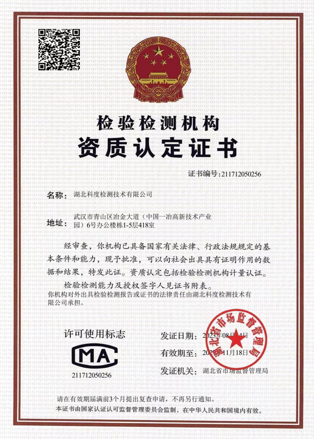 湖北科度檢測技術(shù)有限公司是一家專業(yè)從事環(huán)境類及相關(guān)領(lǐng)域檢測的第三方檢測機(jī)構(gòu),公司已通過湖北省市場監(jiān)督管理局CMA計(jì)量認(rèn)證,可以面向社會(huì)出具權(quán)威CMA檢測報(bào)告。 我公司實(shí)驗(yàn)室嚴(yán)格按照國家標(biāo)準(zhǔn)建設(shè),擁有一大批國內(nèi)外先進(jìn)儀器設(shè)備及現(xiàn)代化配套設(shè)施,并有經(jīng)驗(yàn)豐富的中高級(jí)專業(yè)技術(shù)人員和嚴(yán)格的實(shí)驗(yàn)室質(zhì)量保證體系為項(xiàng)目運(yùn)作提供強(qiáng)力支撐。 作為第三方檢測機(jī)構(gòu),公司始終以高度的社會(huì)責(zé)任感經(jīng)營企業(yè),以“公正、嚴(yán)謹(jǐn)、高效”為宗旨,依托專業(yè)的技術(shù)實(shí)力為客戶提供專業(yè)優(yōu)質(zhì)檢測服務(wù),受到政府、企業(yè)和社會(huì)各界的廣泛關(guān)注和認(rèn)可。
